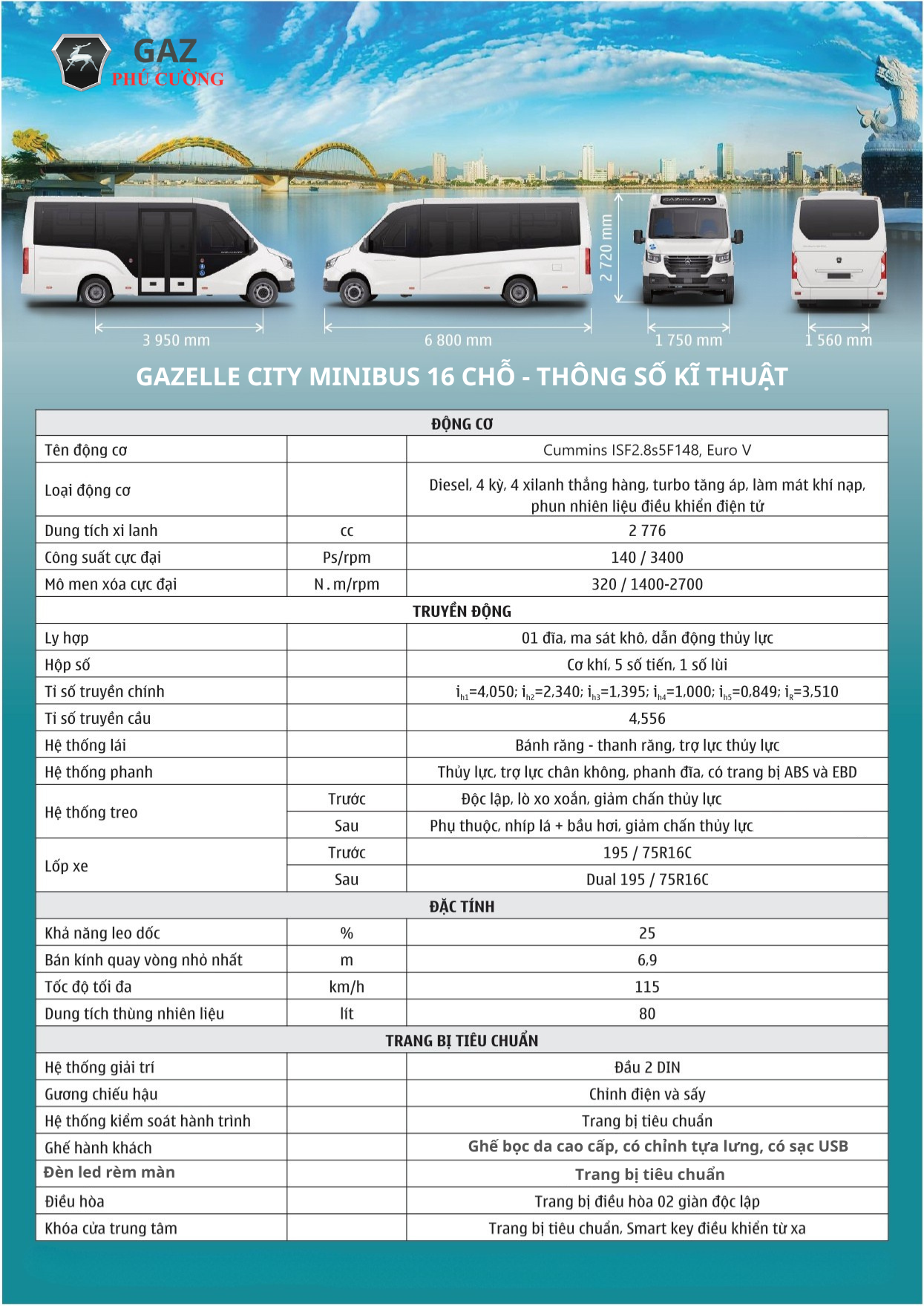 Kích thước tổng thể: Xe sở hữu kích thước DxRxC lần lượt là 6.800 х 2.200 х 2.720 mm với chiều dài cơ sở lên đến 3.950 mm