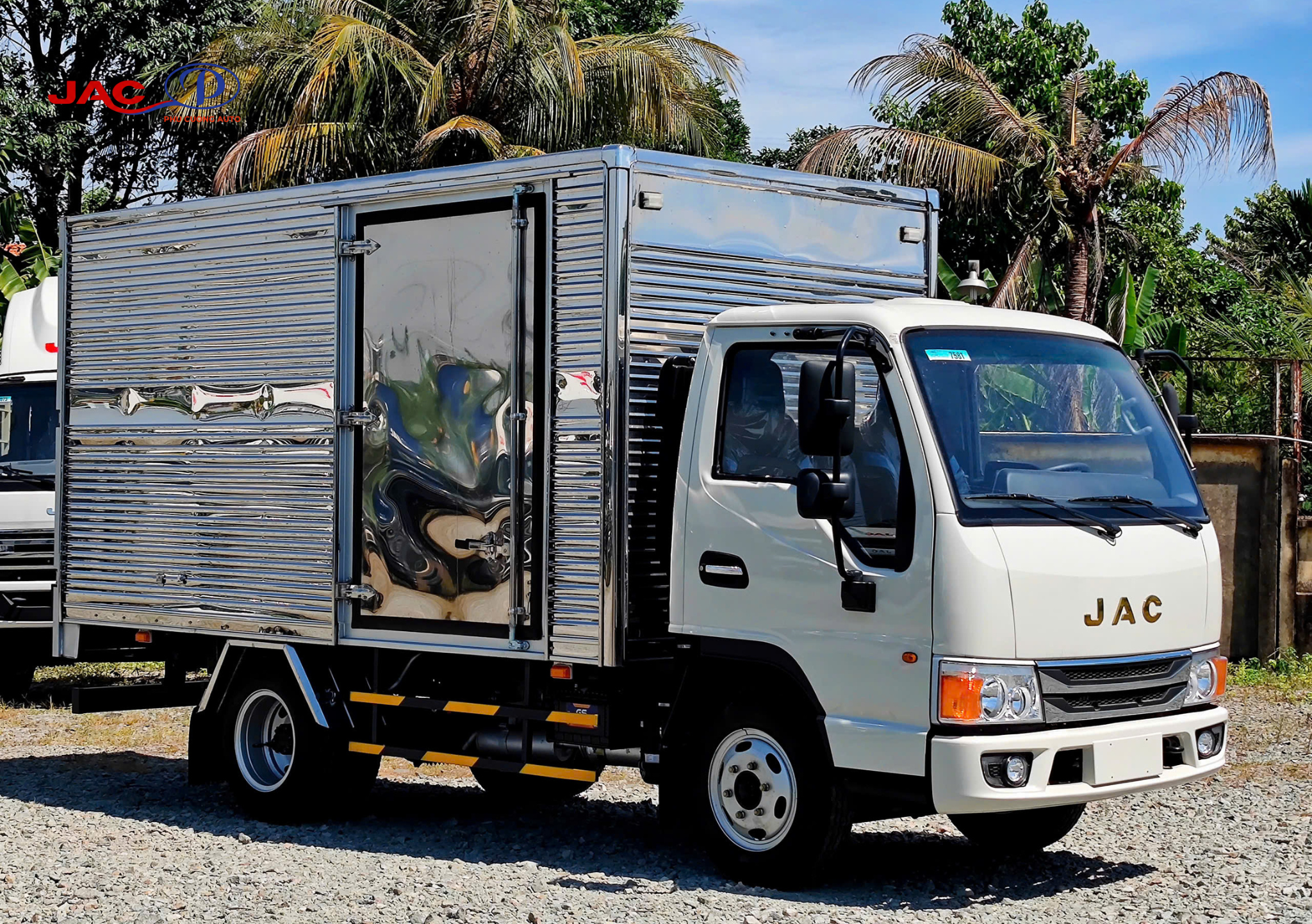 • JAC H250E5: Có cả phiên bản thùng bạt (tải 2.45 tấn) và thùng kín (tải 2.35 tấn) với cùng kích thước thùng 3.8m