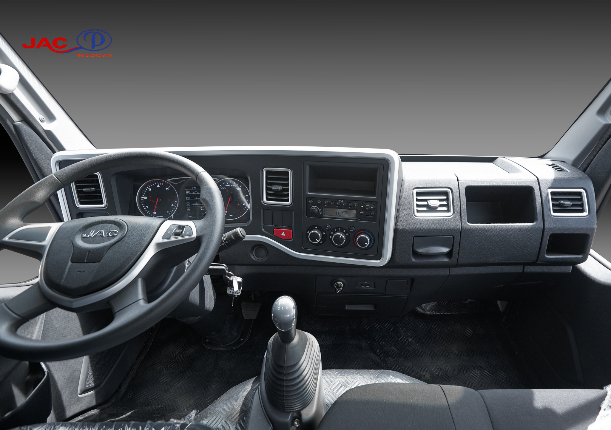 Nội thất của xe tải JAC H200E5 được thiết kế rộng rãi và hiện đại, mang đến không gian cabin thoải mái cho người lái trong suốt quá trình vận hành.