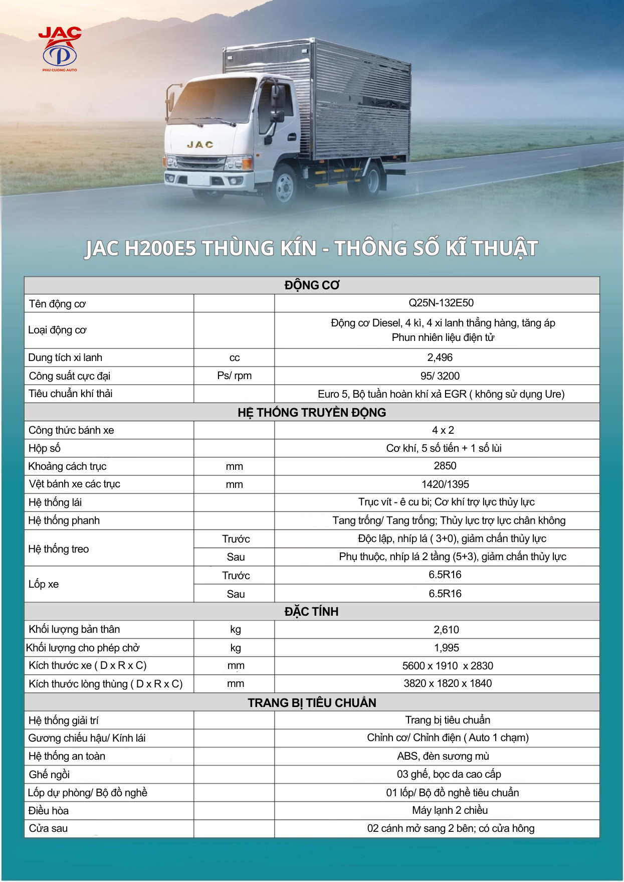 Ngoại thất của xe tải JAC H200E5 được thiết kế theo phong cách hiện đại và mạnh mẽ, tạo ấn tượng ngay từ cái nhìn đầu tiên.