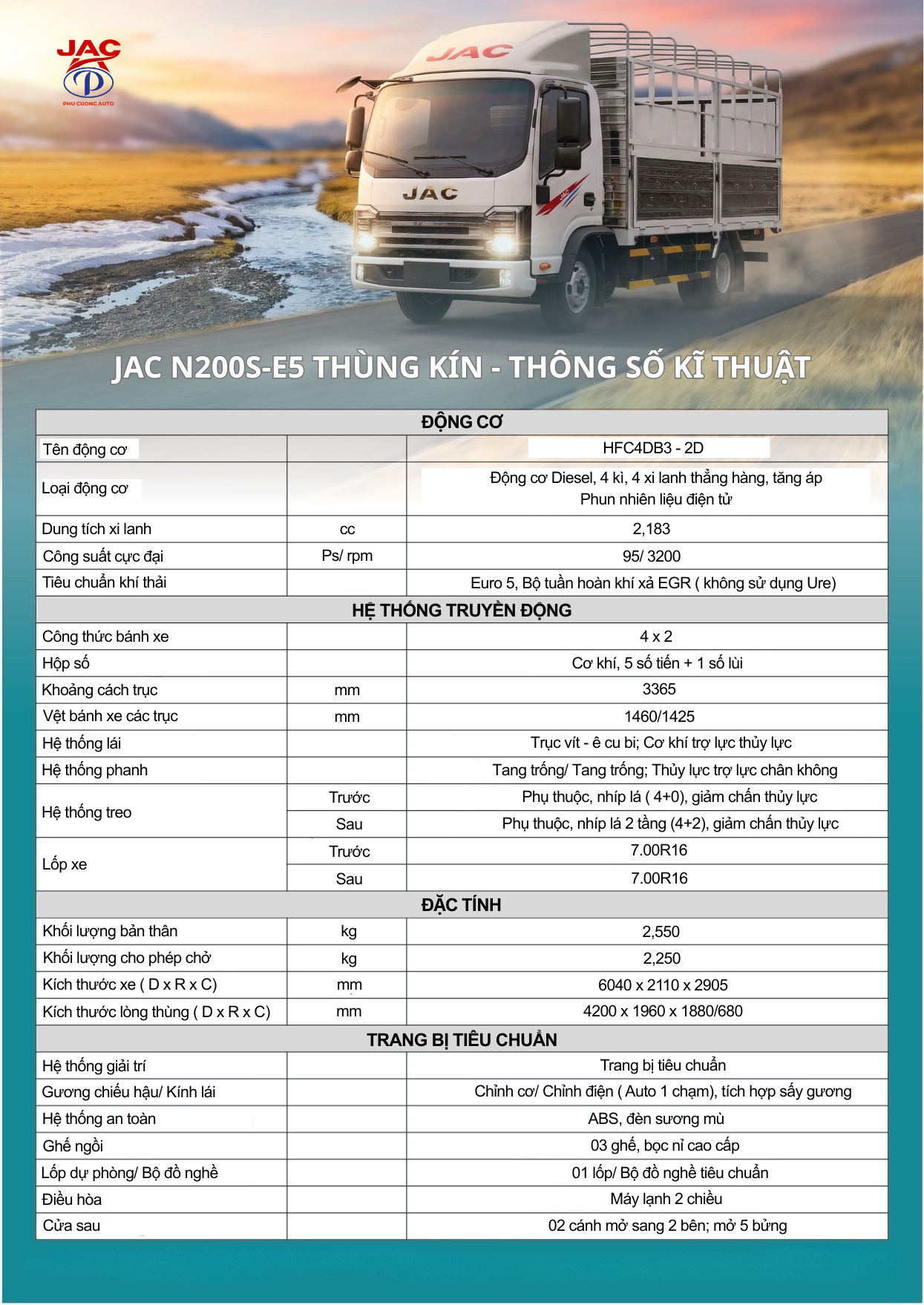 Xe tải JAC N250S-E5 sở hữu diện mạo hiện đại và mạnh mẽ, gây ấn tượng bởi sự kết hợp tinh tế giữa công nghệ sơn tĩnh điện ED bền bỉ và các chi tiết mạ Crom sang trọng, mang lại vẻ đẹp thẩm mỹ cao và khả năng chống gỉ sét vượt trội.