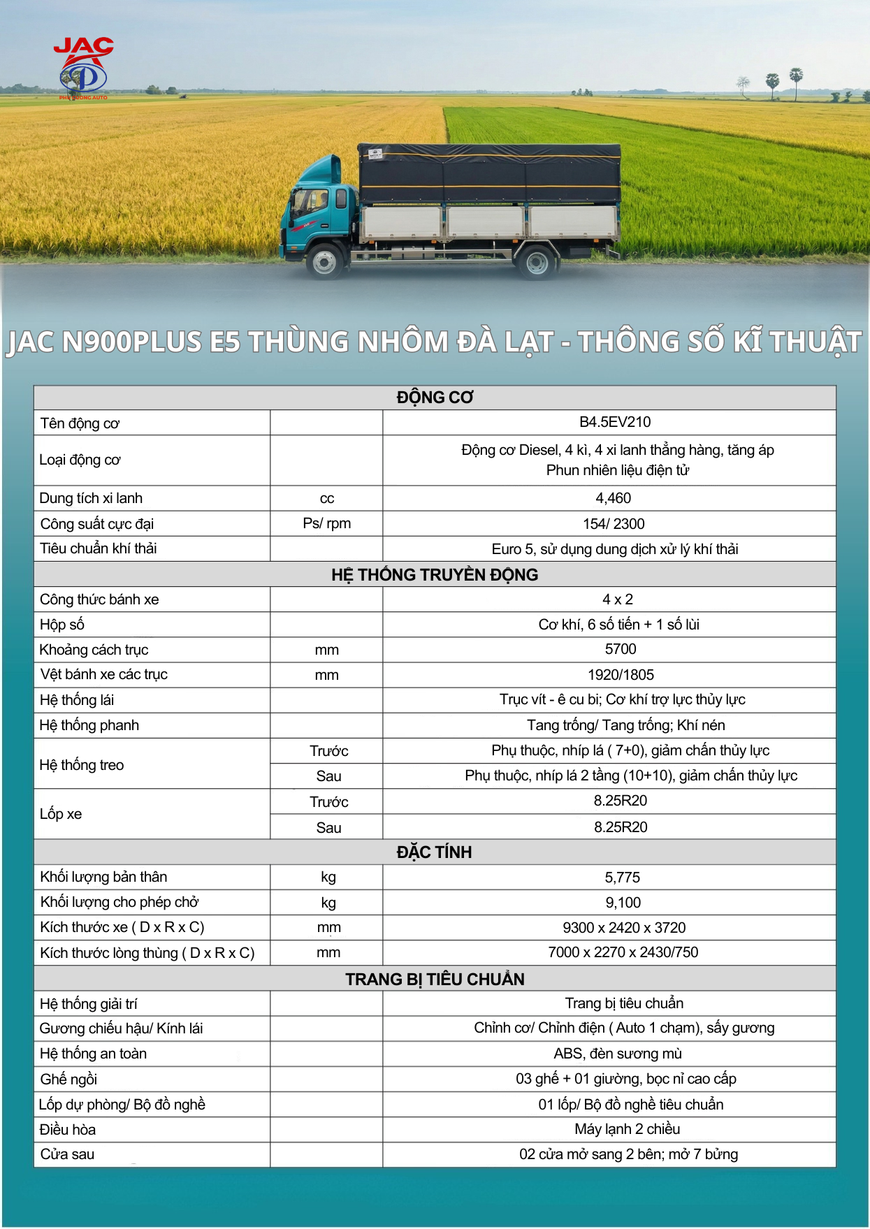 • Giá xe JAC N900Plus E5 thùng nhôm Đà Lạt: Giá công bố từ đại lý ( Liên hệ)